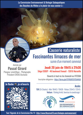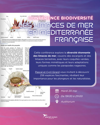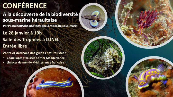 Conférence sur les limaces de mer méditerranéennes et dédicaces du nouveau livre.
