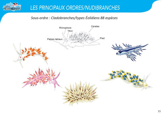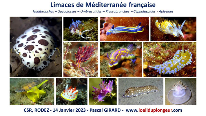Contribution avec 12 photos de nudibranches de Méditerranée et des Philippines.