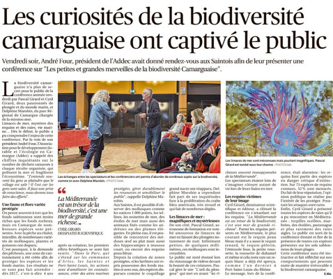 Conférence organisée par l'ADDEC avec un focus particulier sur les limaces de mer observées en Camargue.