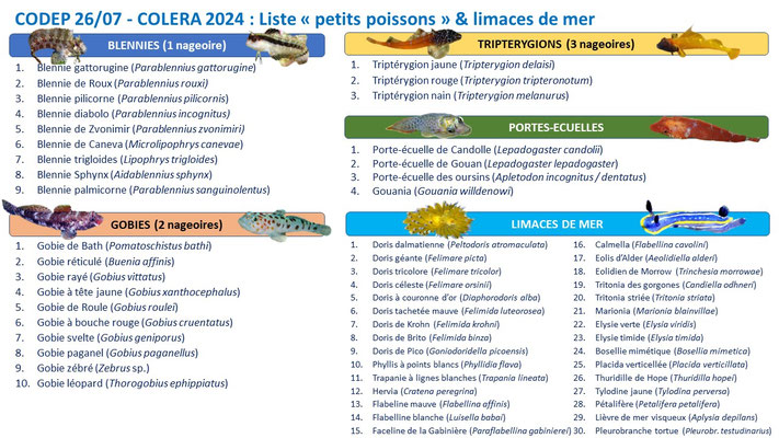 Séjour en Catalogne (Diving Center Colera) sur le thème des petits poissons (gobies, blennies, triptérygions et autres) et des limaces de mer.