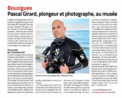 Exposition de photos dans le cadre de l'exposition "Secrets des algues marines" au musée de l'Etang de Thau à Bouzigues. Du 5 février au 25 août 2025. Article Midi Libre