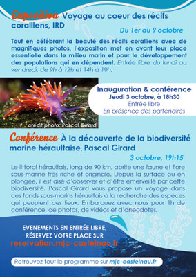 Conférence sur la biodiversité marine héraultaise (18h) et table ronde à l'Université Paul-Valéry (Montpellier) : Infos ici