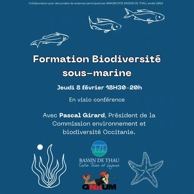 Une visioconférence organisée par le CPIE Bassin de Thau pour les étudiants du GNAUM de l'Université de Montpellier. Sur le thème de la biodiversité marine de l'Hérault, les sciences